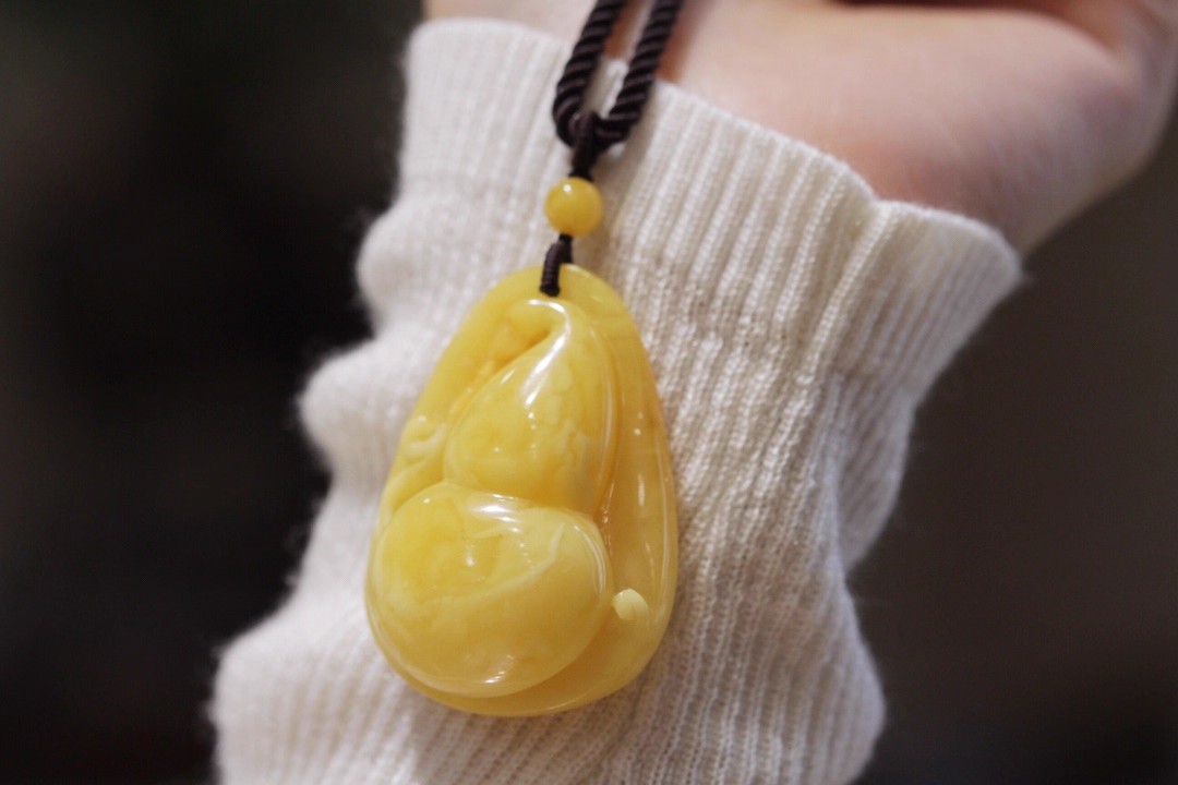 W 蜜蜡葫芦吊坠,蜜质饱满,白蜜的流淌花纹男女款项链