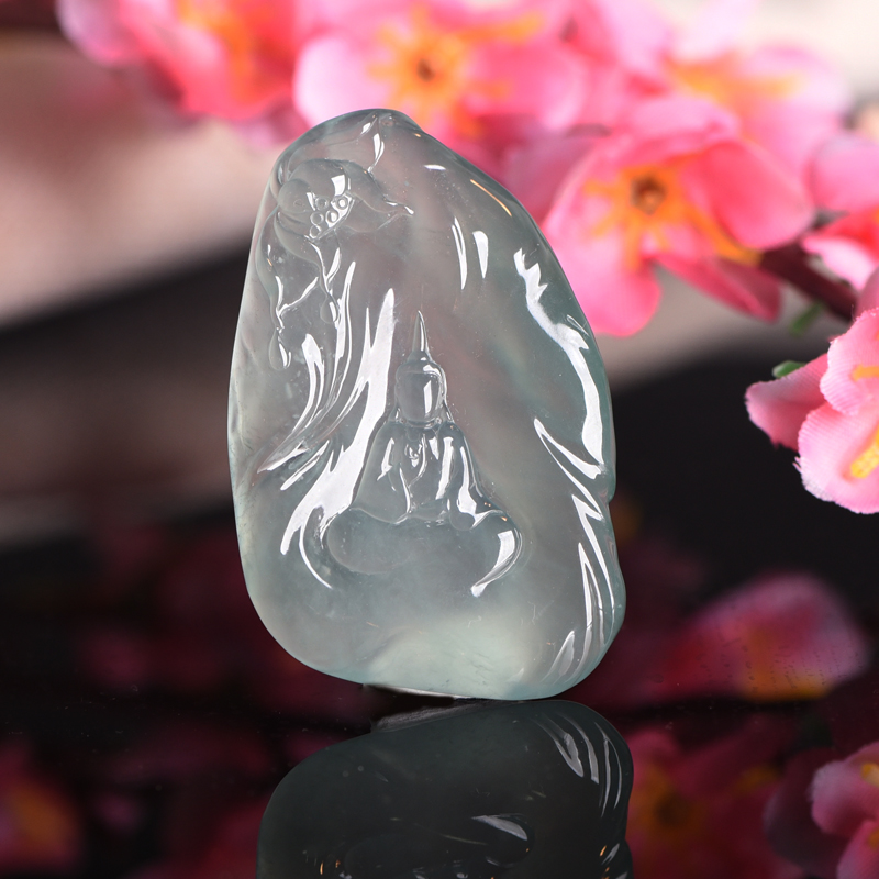 盲派高老师加持珍藏翡翠玉意境无相佛吊坠