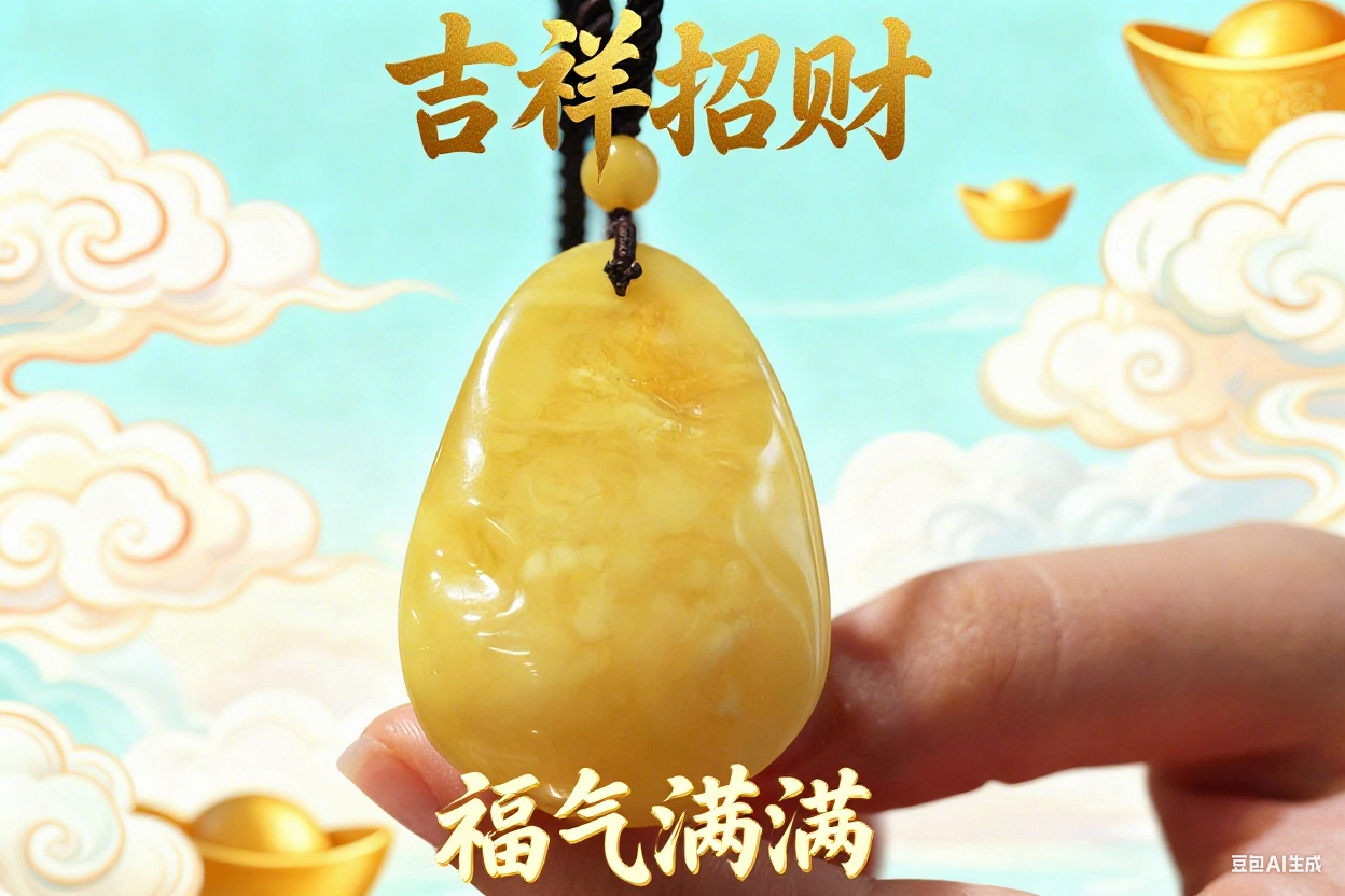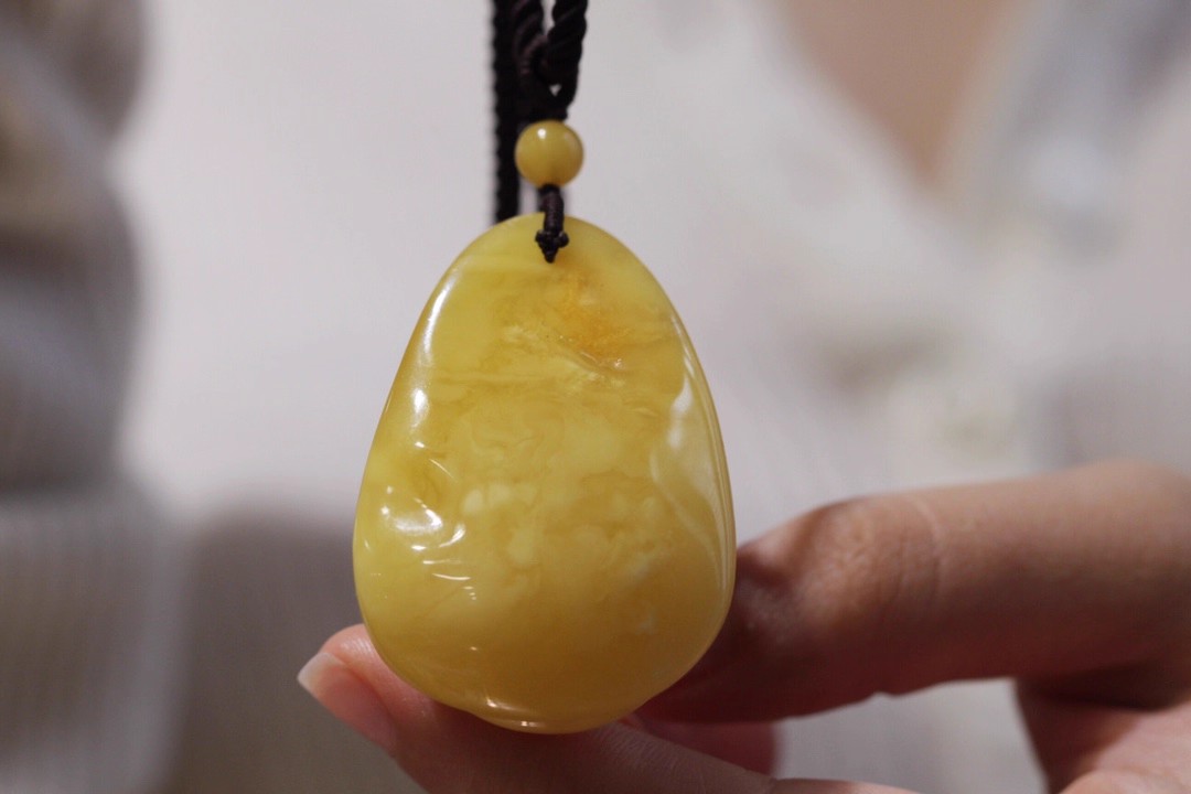 W 蜜蜡葫芦吊坠,蜜质饱满,白蜜的流淌花纹男女款项链
